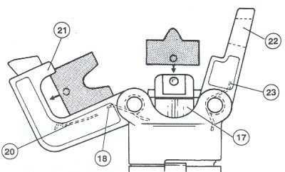 – pomocí západky (22) otevřete hlavu lisu. Díky pružině se horní držák čelistí(21) hodně otevře.