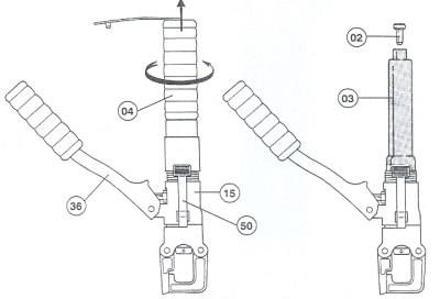Pumpovat s nástrojem tak dlouho, až čelisti dojedou do koncové pozice a je slyšet cvaknutí ( dosažení max. tlaku ).